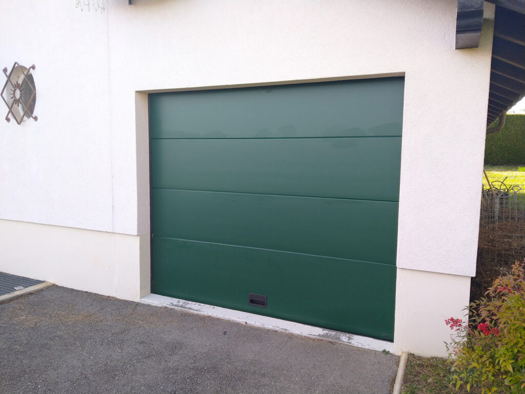Pour ce client privée nous avons remplacé une ancienne porte de garage par une nouvelle porte de garage réalisée sur mesure de couleur verte, sectionnelle et isolée. C’est une porte automatisée grâce à notre partenaire moteurs SAE